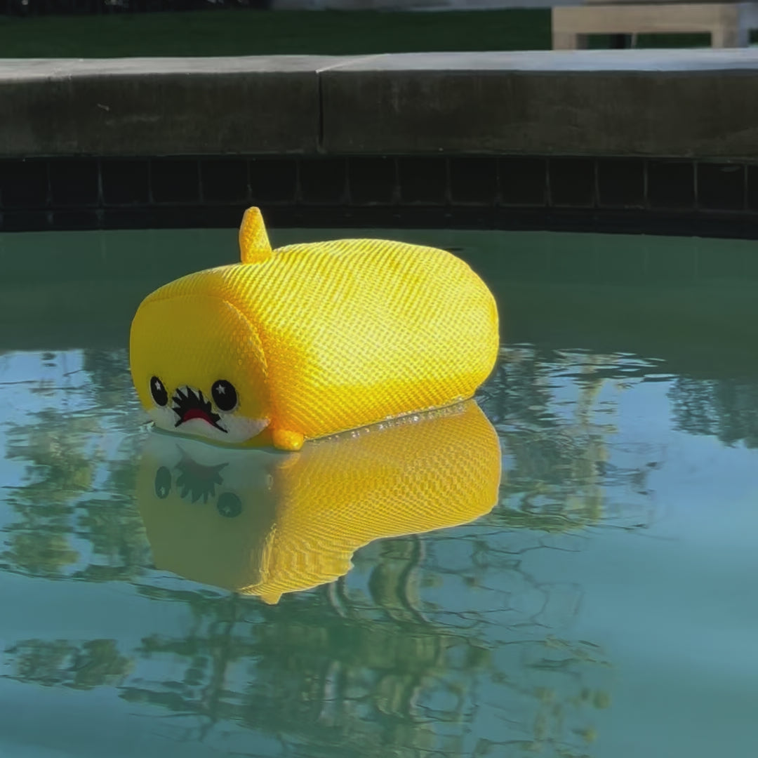 Meet Dash the Shark! Their yellow coloring is as bright and vibrant as their personality. Dash is a fast swimmer (don’t tell Finster), you might catch a glimpse of Dash by the surface of the water being captivated with nature. This cute Shark plush loves to learn about the world and their special water friendly material helps them explore every nook and cranny for new discoveries! From bath adventures and pool racing this soft plush explorer is ready for anything! Quick drying, water safe and brave enough for every quest!